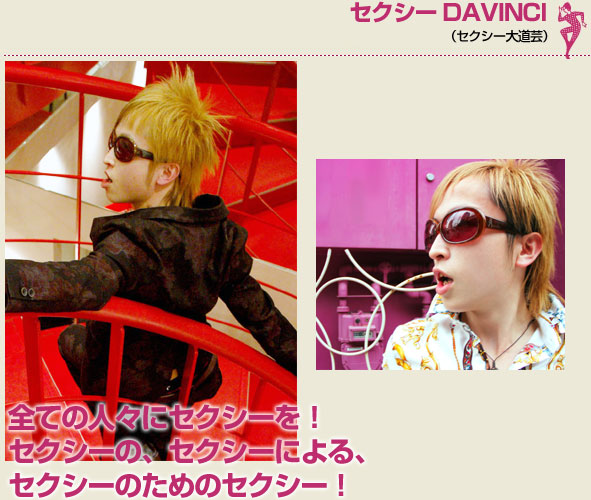 とっても美しいお兄さんによる、 とってもおバカなパフォーマンス。 なにはともあれキーワードは「セクシー」。 彼にかかれば、普通の大道芸も 一瞬にしてセクシー大道芸に早変わり! 案ずるより産むがやすし!まずは見てみて!