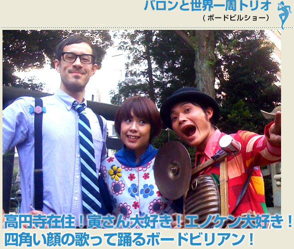 ウクレレよし!歌ってよし!タップでよし!音楽とダンスと歌で、とってもしみじみ、バロンの世界をお届けします。特に彼の歌は最高!こんなに心に染みるシンガーってめずらしいと思いますよ!!ほのぼの空気と相まって、なんだかポロっと泣けちゃったりして!?