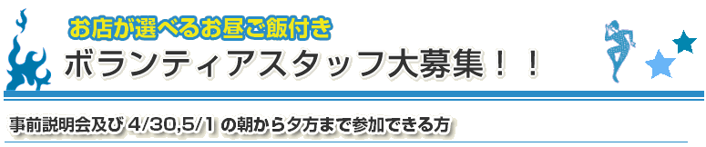 そこで、大道芸を思う存分満喫し、このイベントを盛り上げてくださるボランティアスタッフ100人を大募集いたします。